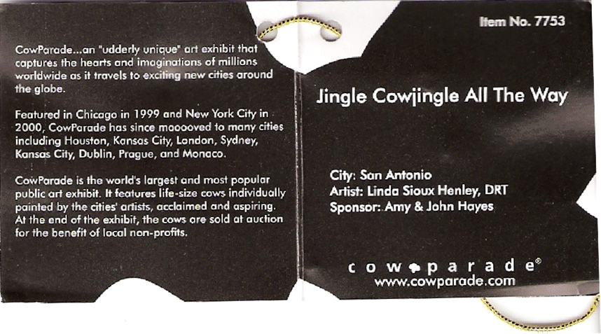 Artist: Linda Sioux Henley, DRT Sponsor: Amy and John Hayes Event: Cow Parade San Antonio 2003 |